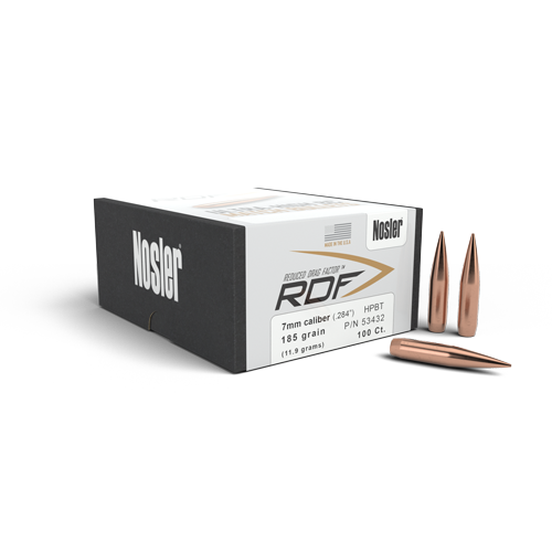 For those wanting to squeeze the most performance from their competition rifle, Nosler’s new RDF (Reduced Drag Factor) match bullet line is the ideal choice. Nosler’s RDF line was designed from the ground up to provide exceptionally high BCs, which create the flattest trajectory and least wind drift possible. The keys to the RDF’s outstanding performance are Nosler’s meticulously optimized compound ogive and long, drag reducing boattail, which make handloading a snap and create an incredibly sleek form factor. RDF bullets also have the smallest, most consistent meplats of any hollow point match bullet line, so there is no need to point or trim tips. Highest B.C.’s, smallest meplat, tighter groups – Nosler RDF.